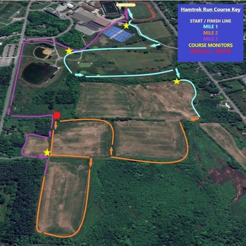 Leave Dunham lot transition area and proceed through Love field to begin the 5K run. Follow the marked course to complete the 5K cross-country race loop, which circles the Loop Road Baseball and Softball complex, and the farm field just to the west of it. The course will be marked by mowed grass, painted arrows, and volunteers along the course. Return to Love field following the same route that you used to enter the cross country course. The finish line is located at the east end of Love field near Dunham lot. Be sure to cross the finish line timing mat and proceed thru the finish chute to the timing chip ankle bracelet return area.