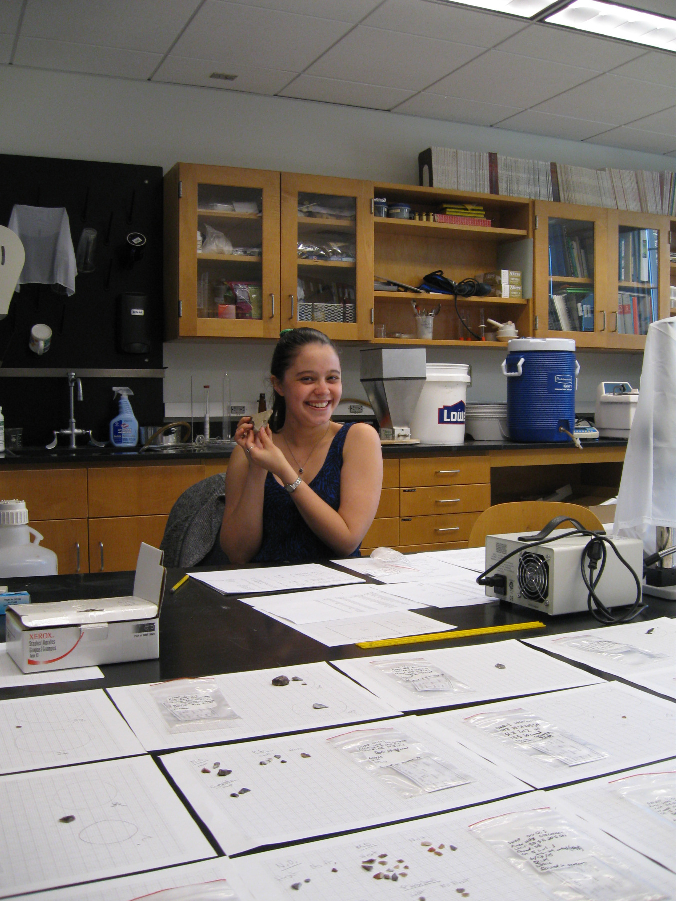 Lindsay Buff, a geosciences /archaeology double major, has been conducting research on the fine-grained volcanic (FGV) artifact assemblage recovered from Housepit 54, Bridge River Housepit Village in British Columbia, Canada, in conjunction with Hamilton Professors David Bailey and Nathan Goodale and University of Montana professor Anna Prentiss.